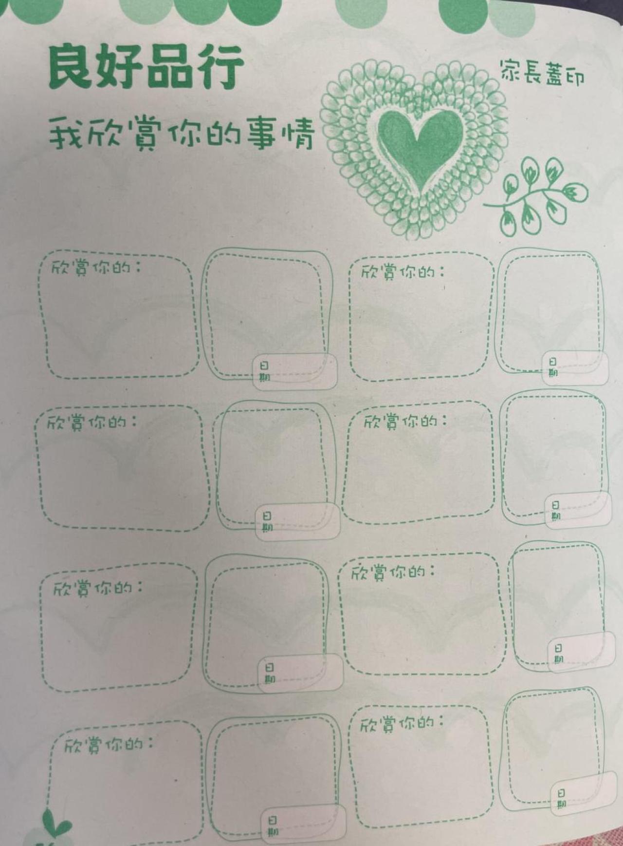 與家長教師會合作推行此計劃,每位學生可獲取一本用心生活紀錄冊,鼓勵學生積極進取和用心生活,教師及家長可觀察學生在校內和校外的表現給予不同的鼓勵印章,好使學生能增強自信心,努力朝向所定的目標進發。(上下學期各統計所獲印章數目一次)