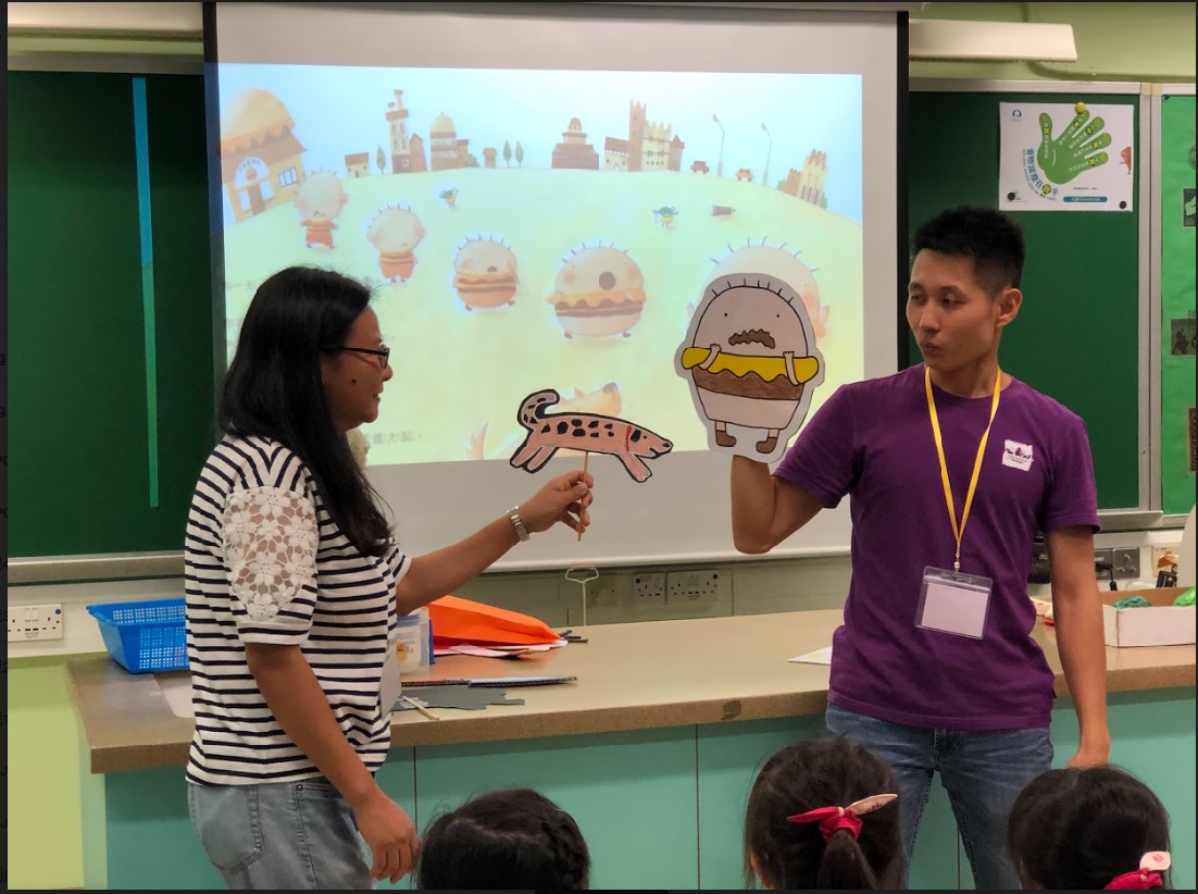 (1) 大頭妹讀書會:家長閱讀大使為低年級學生說故事,並進行延伸的閱讀活動