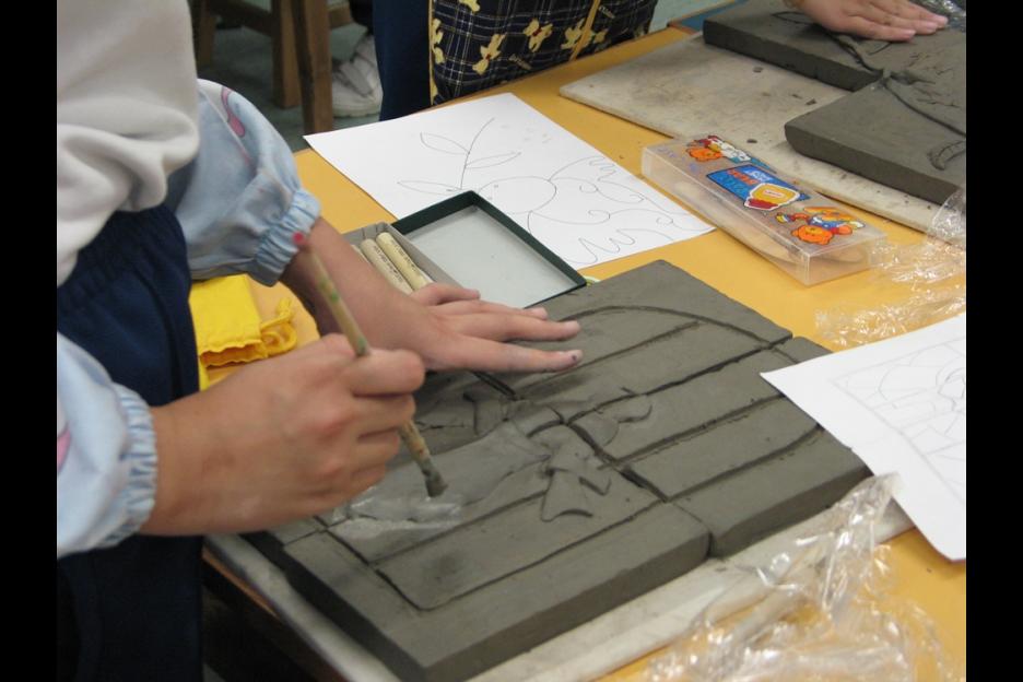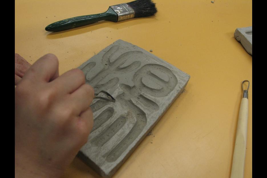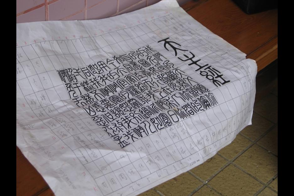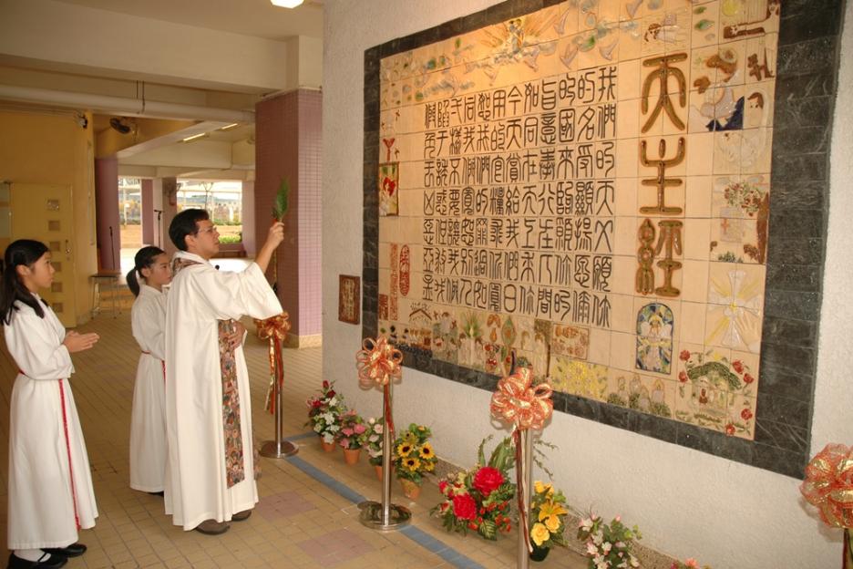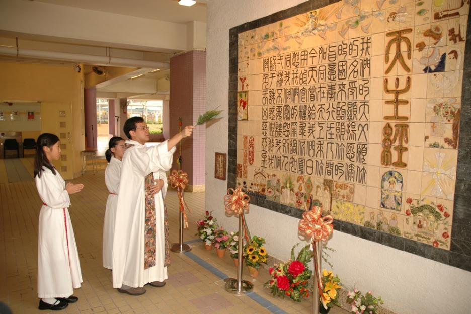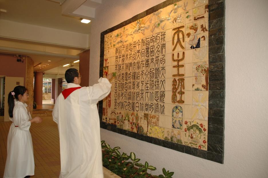 《天主經》是唯一一篇由耶穌親自教授的經文,對天主教徒來說有很深刻的意義,我們特別以中國篆書重新演繹此禱文,另於其週邊綴以浮雕裝飾。浮雕裝飾的主題以《天主經》禱文內容為主,再融入孩子的想像世界,別有一番拙撲的味道。 |