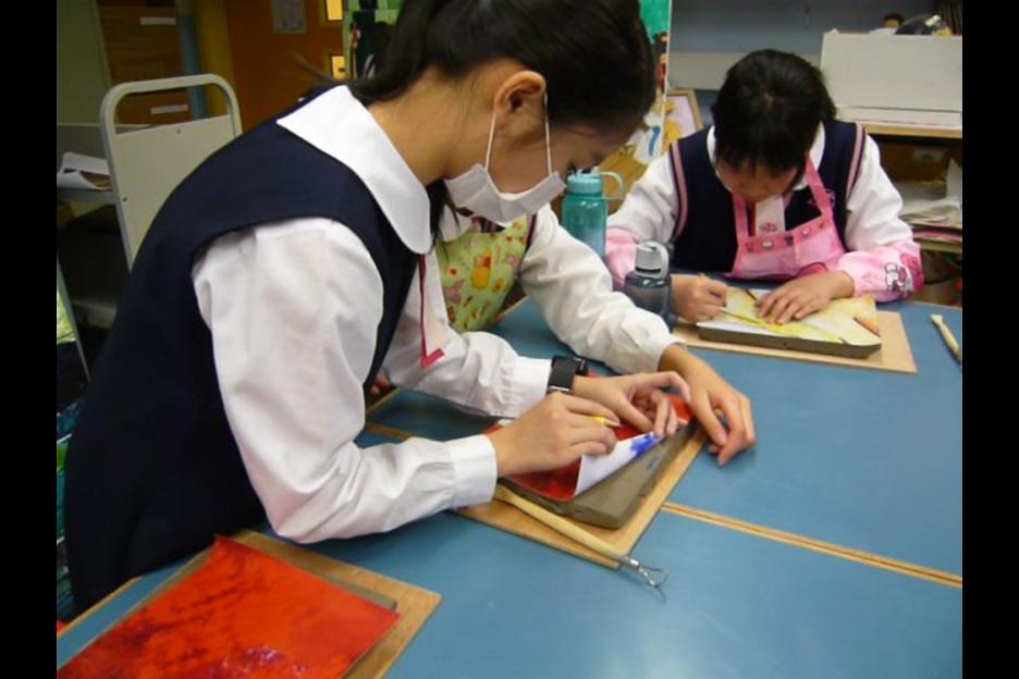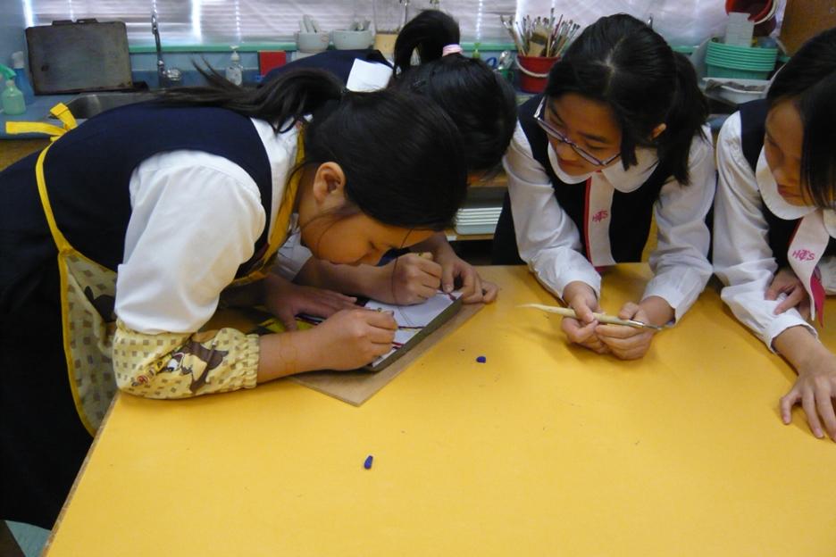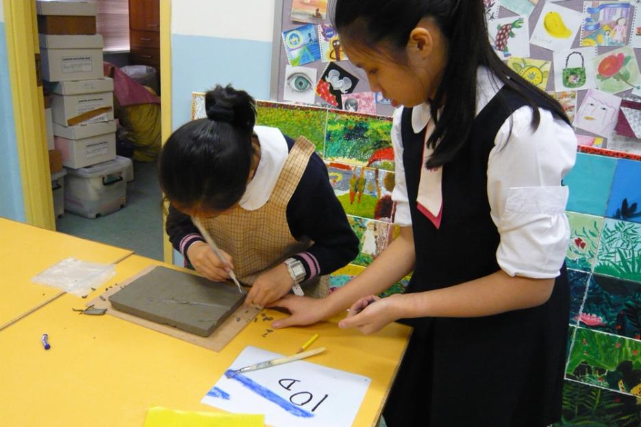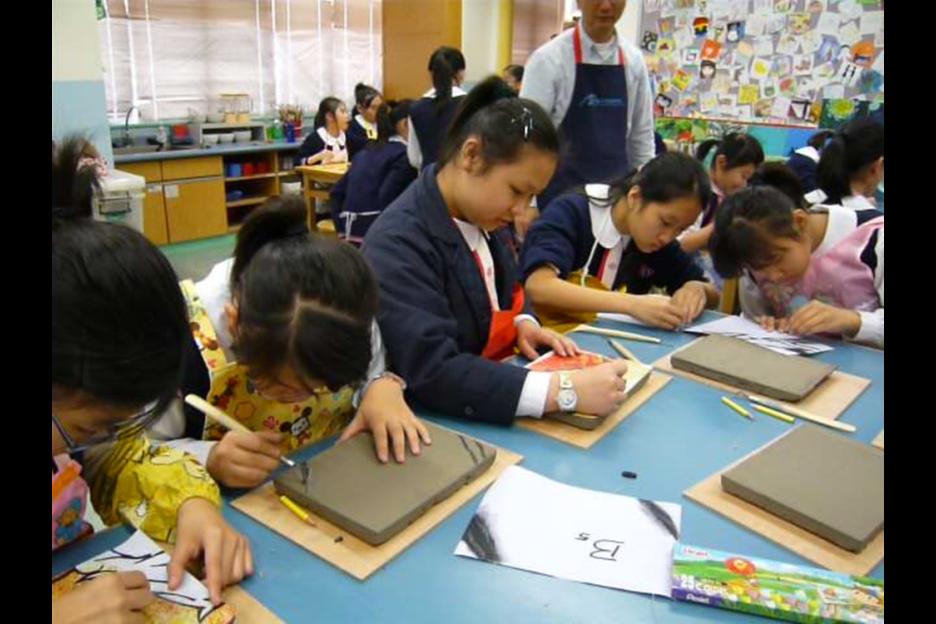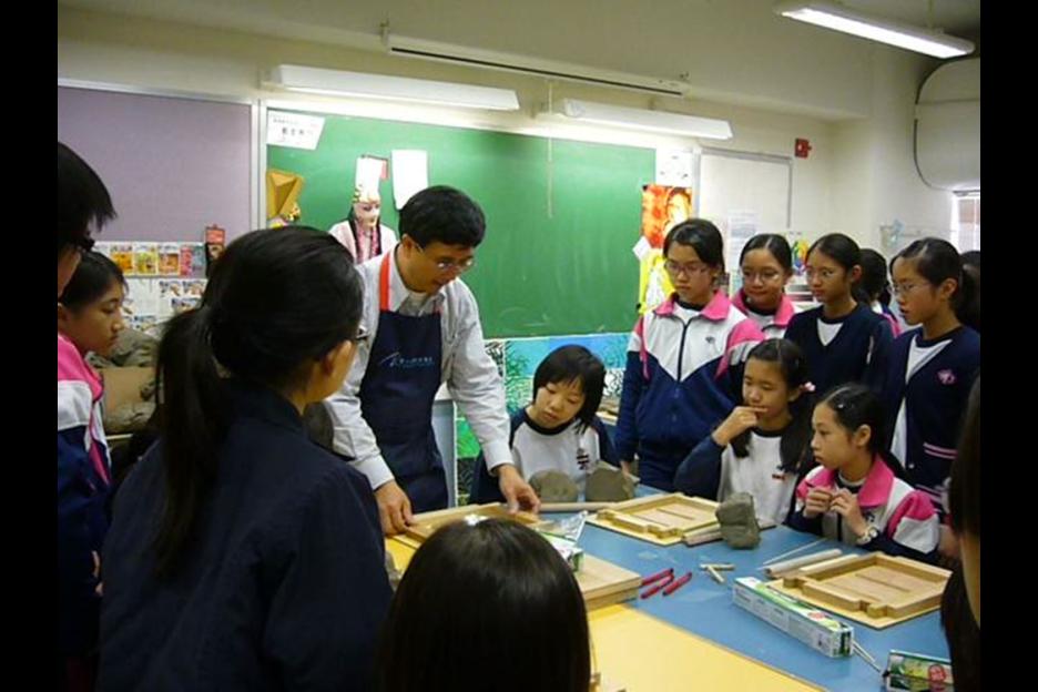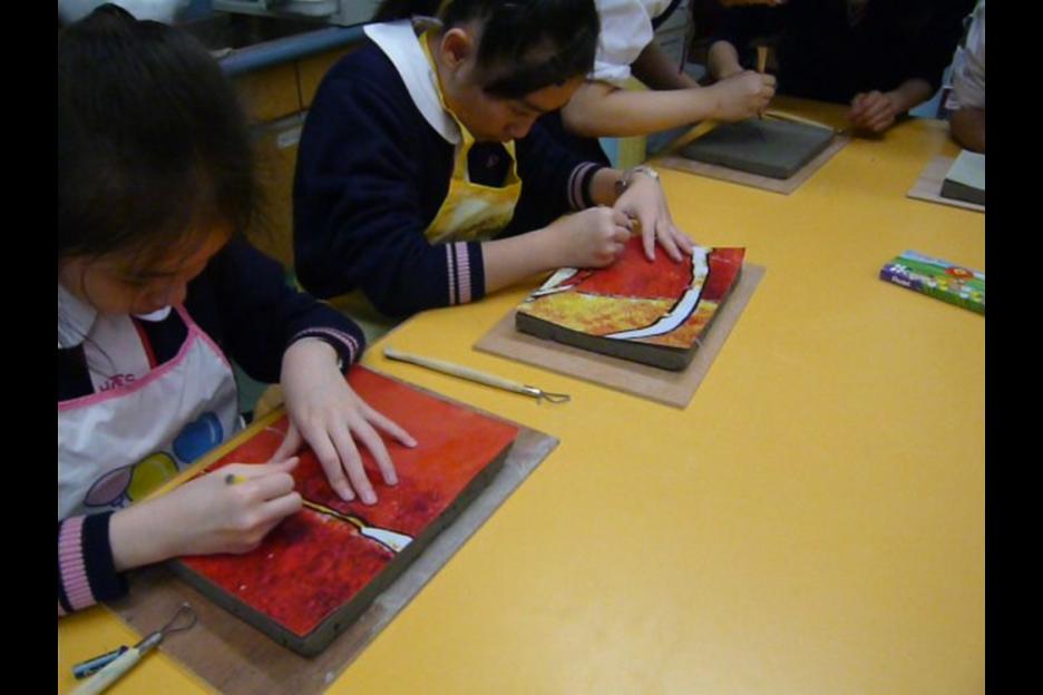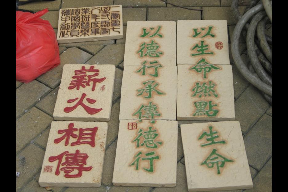 本陶磚壁飾特別置於上學及放學必經路上,別具意義。