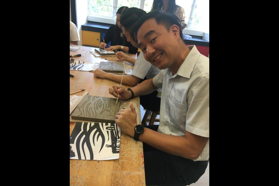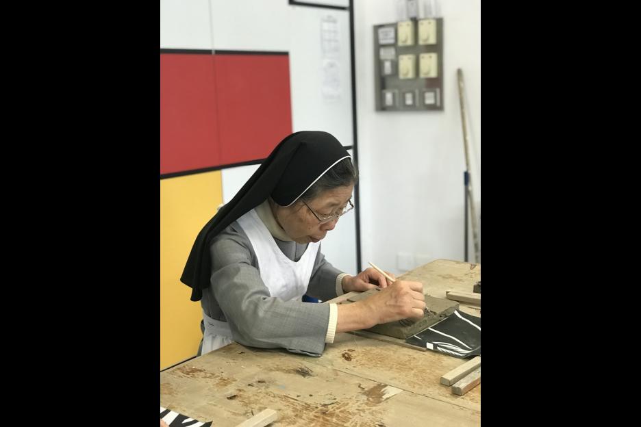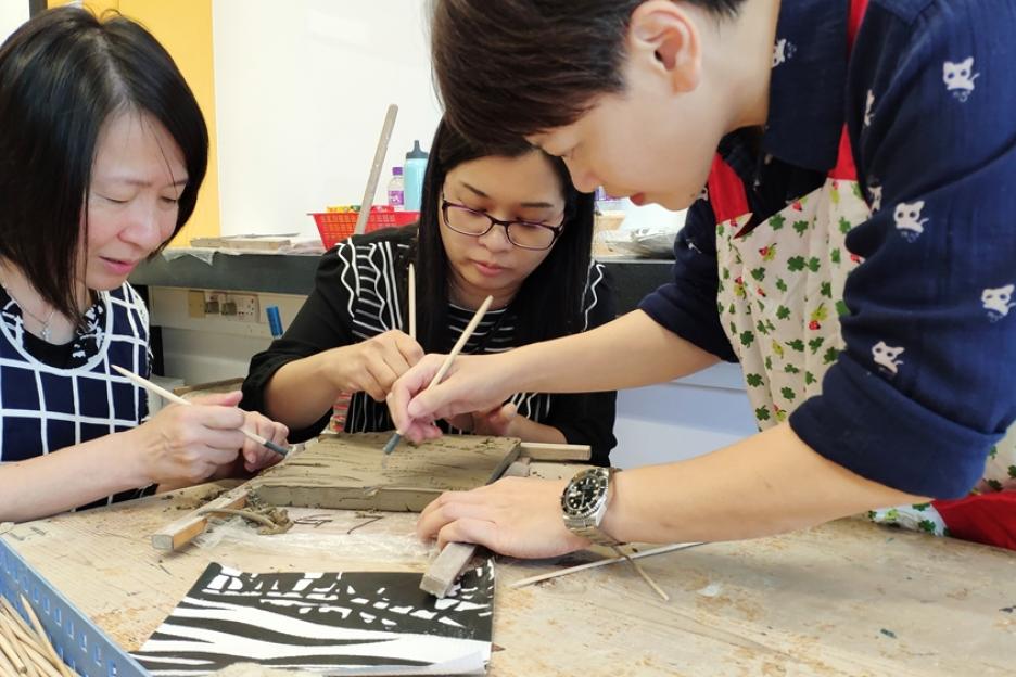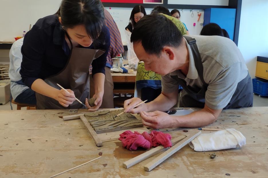 作品以陰刻及陽刻表達,釉色上運用了金古銅,底部以丙稀顏料塗上金色,再綴以紙皮石,營造出歐陸色彩。希望觀賞者能透過作品加深嘉諾撒會來華傳教歷史的認識及興趣。