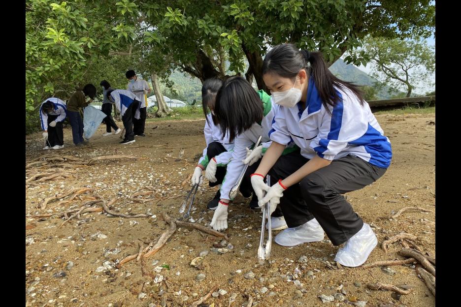 當日中四級地理科選修的學生,前往大埔的汀角紅樹林進行海灘清潔,為這個「具特殊科學價值地點」(SSSI)的環境出一分力!除了帶走超過30公斤的廢棄物外,學生亦在紅樹林的泥灘進行生態考察,在全港8種紅樹中,認識了6種!亦了解到石蠔、螺、蟹、海星等等的不同生物,進一步加深學生對香港生態的認識!