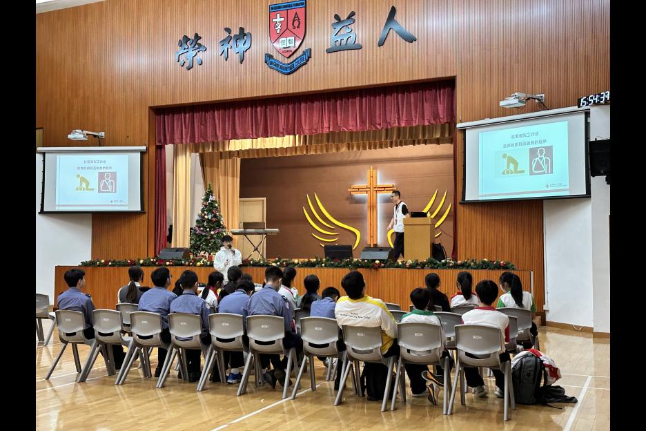 本校紅十字會隊員今天參加由總部舉辦的備災訓練工作坊,透過講座及活動讓同學了解家居安全、心理健康的重要性