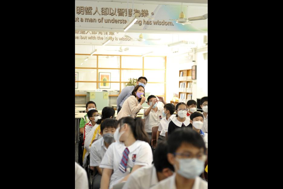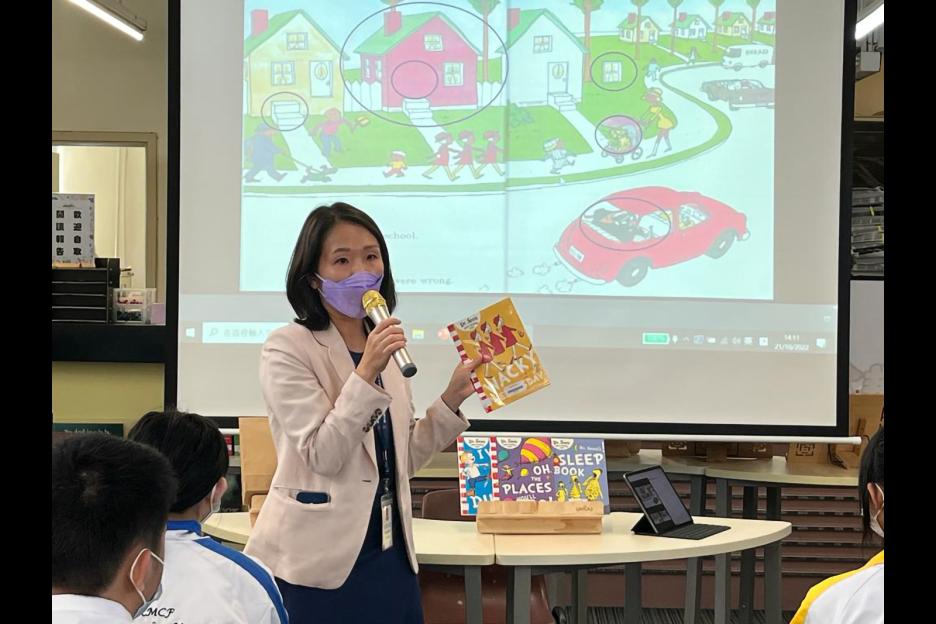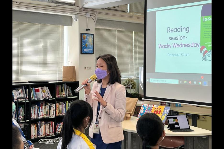 陳校長為了鼓勵中一同學閱讀英文書籍,特意藉第七節閱讀課,帶學生到圖書館,以一個全英語的語境,向同學們介紹Dr Seuss的作品Wacky Wednesday。當日中一的同學跳出了傳統的教室,學會了很「地道」的英語用詞 ─ Wacky呢﹗