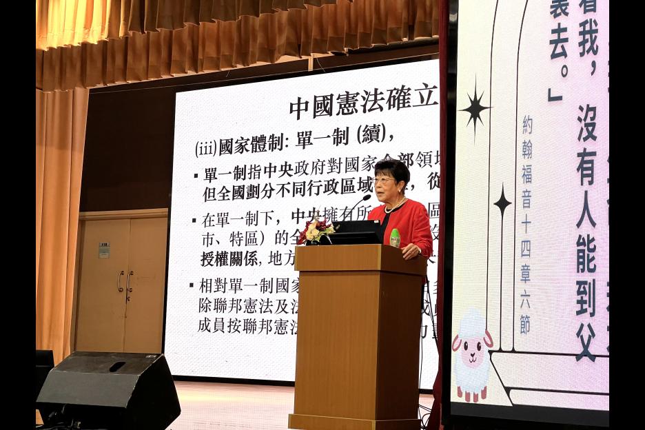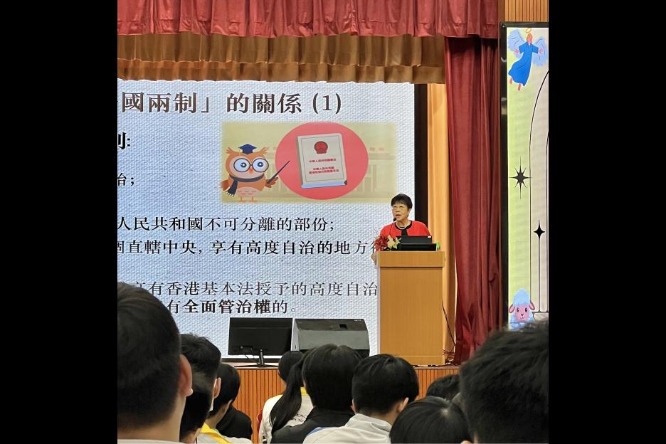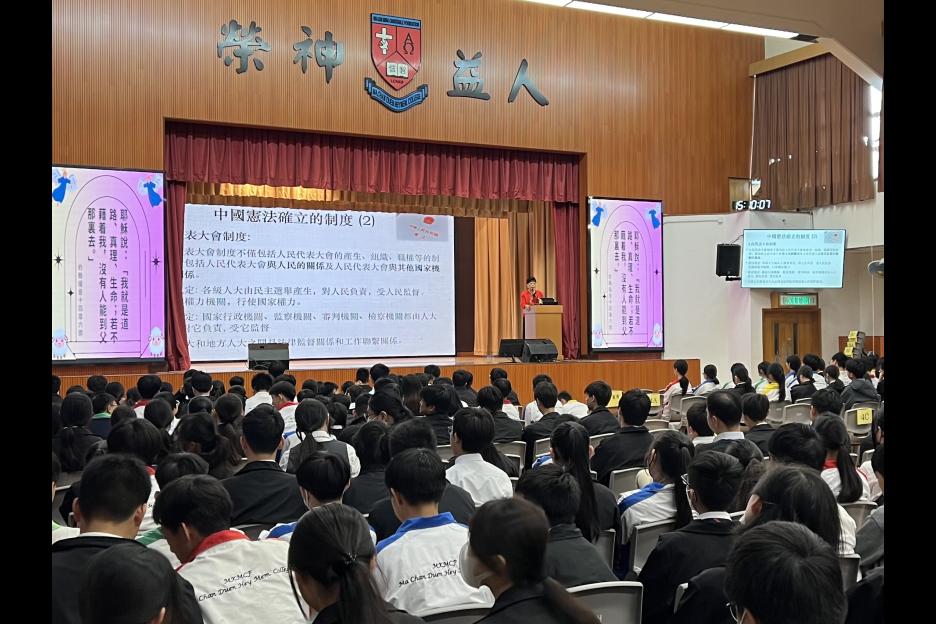 《憲法》係國家根本大法,每一個中國人都應該認識《憲法》以及《憲法》所定立嘅國家制度同政治秩序。為咗促進同學對國家憲政體制嘅認識,馬中早前除咗喺12月4日「國家憲法日」當日舉行升旗儀式並進行「國旗下的講話」之外,更加喺12月6日嘅周會邀請到前立法會議員、港區全國人大代表劉健儀律師嚟到為馬中師生分享有關《憲法》、《基本法》以及「一國兩制」嘅重要原則同概念。劉健儀律師明確指出,《憲法》係《基本法》嘅母法,而兩者又共同構成「一國兩制」、「港人治港」嘅法理依據同憲制基礎,確保咗香港嘅長期繁榮穩定;香港嘅高度自治權源於中央嘅全面管治權,兩者有機結合、同時並存。在場馬中師生都獲益良多,對國家憲政體制嘅認識都加深咗唔少。