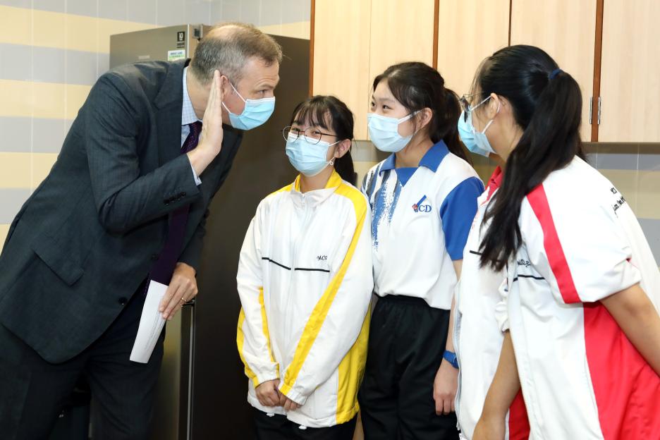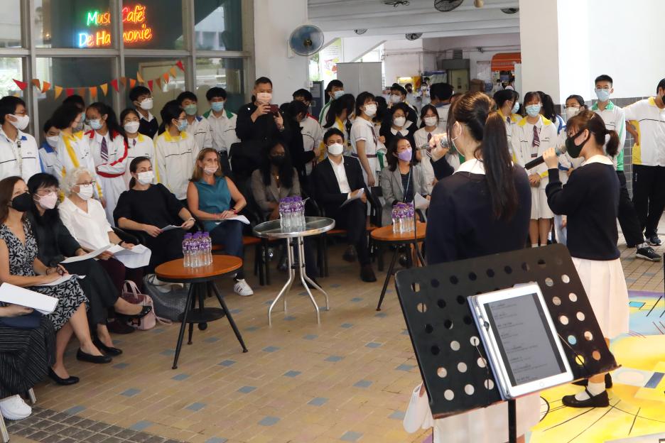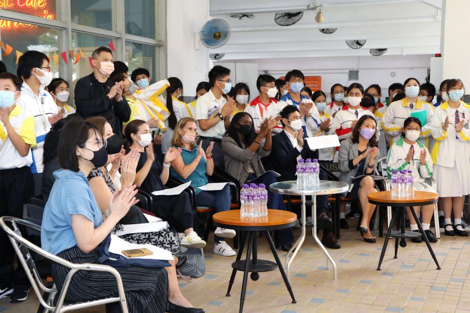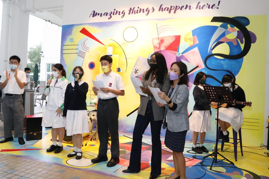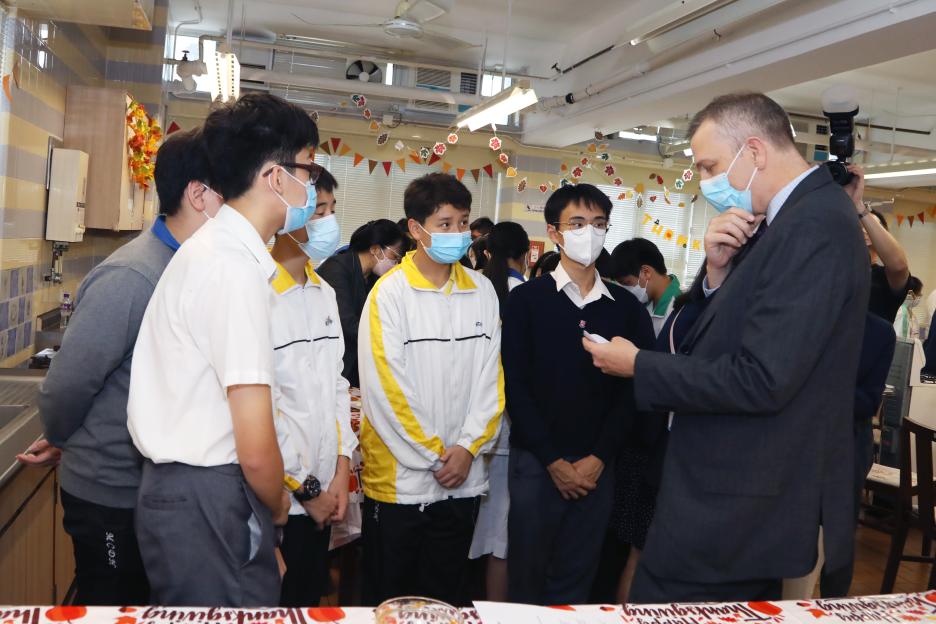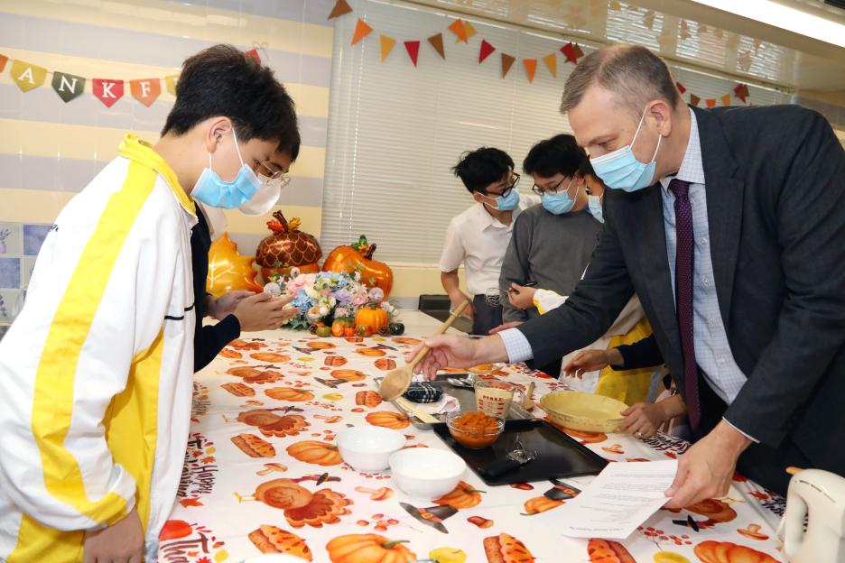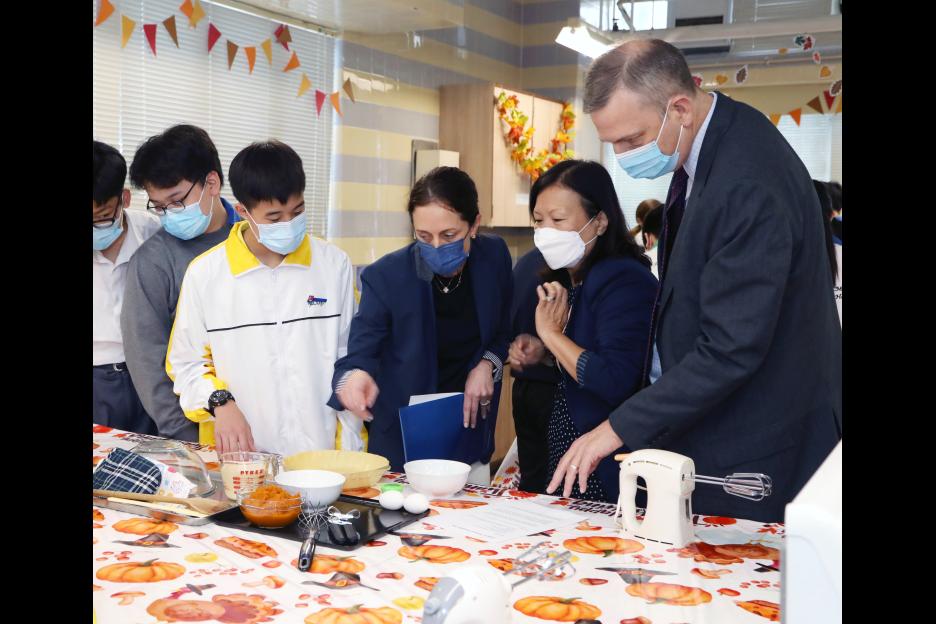 美國駐港澳總領事梅儒瑞先生(Mr. Gregory May)及夫人於2022年11月23日率先帶領十名居港美國義工到本校一同慶祝。
