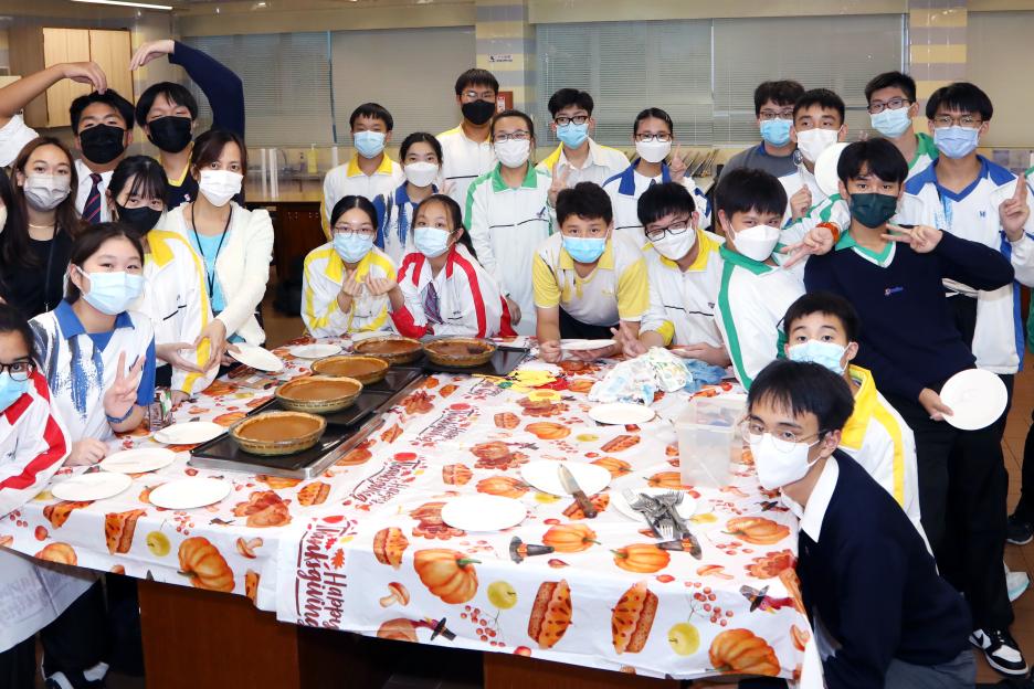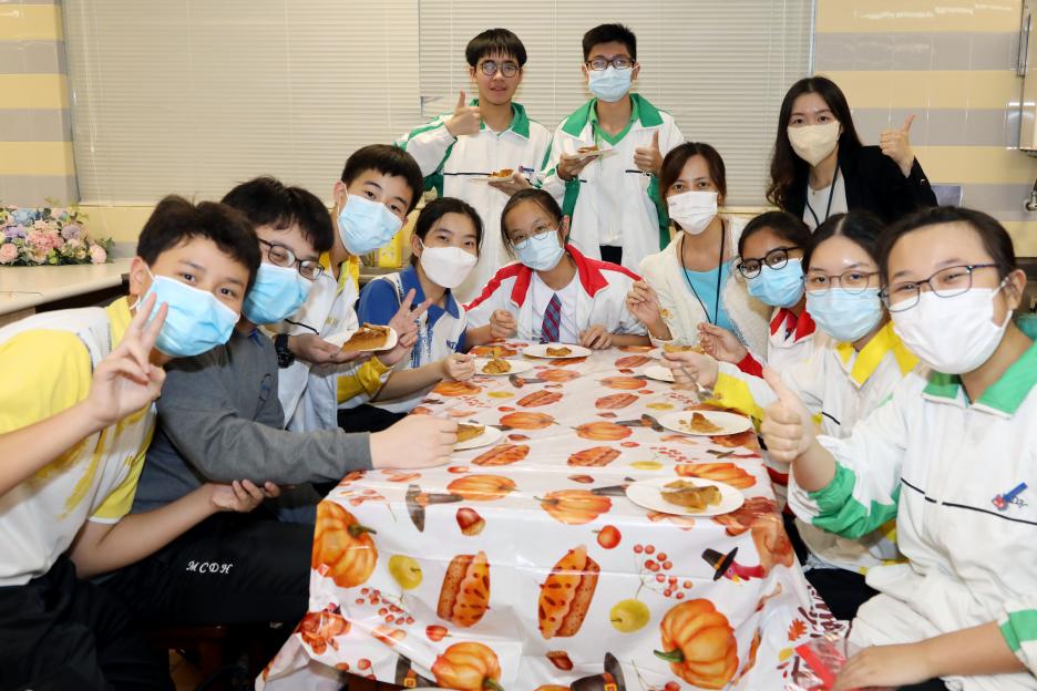 其後梅先生到校向同學介紹感恩節的由來和歷史,之後就和同學們一起親手製作屬於自己的南瓜批。大家都表示南瓜批非常美味。