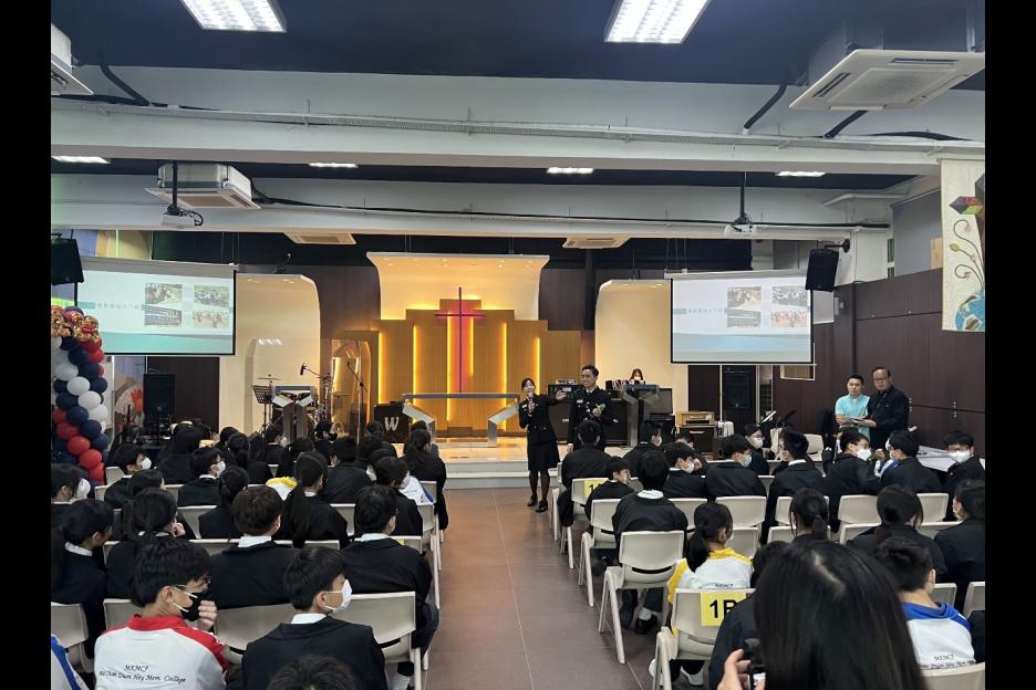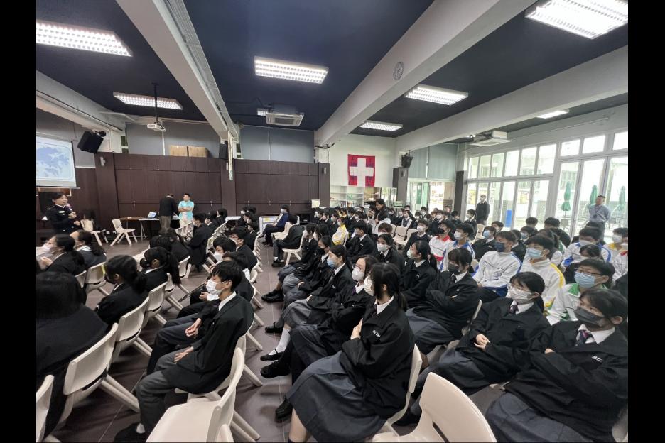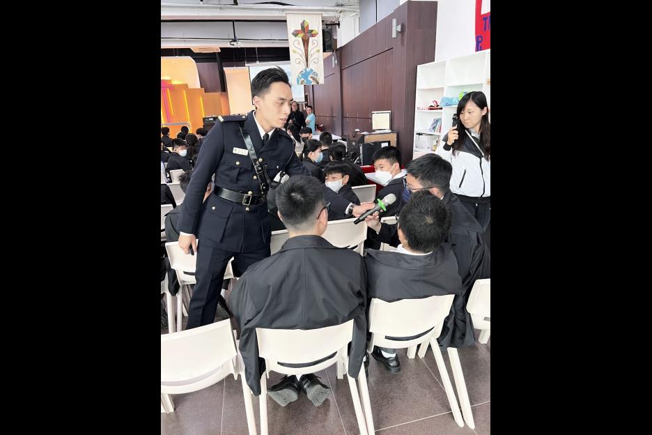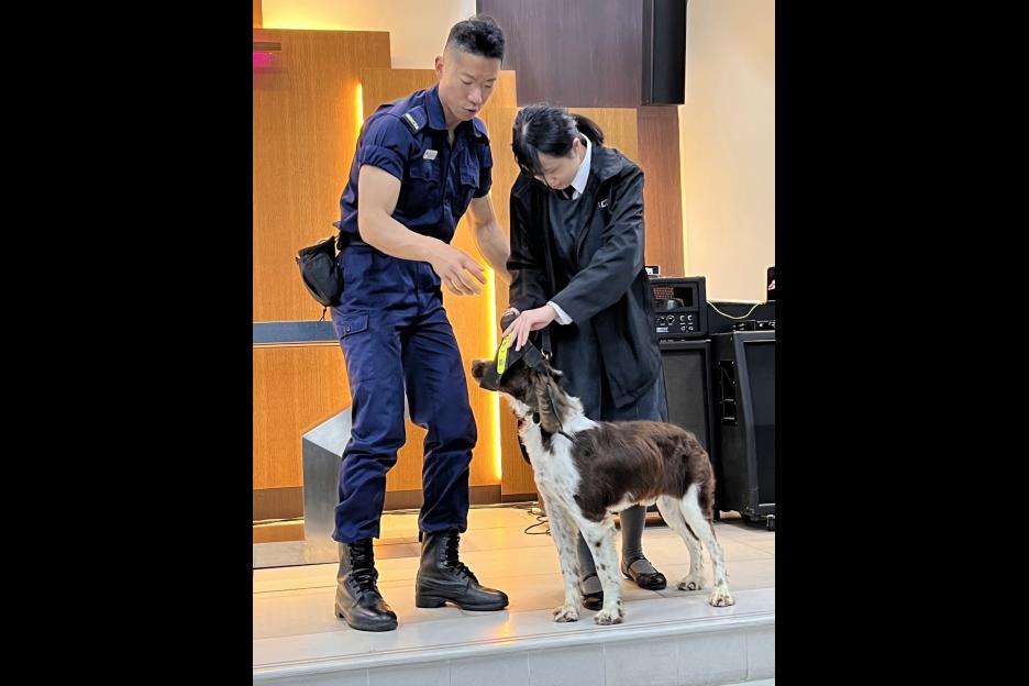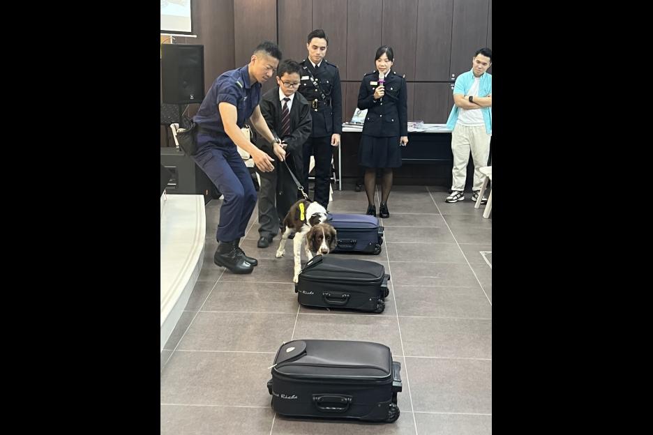 為提高中一、二同學奉公守法意識,本校訓導組誠邀懲教署職員來校舉辦滅罪講座。於活動後半部份,懲教員更示範如何訓練警犬,同學反應雀躍,爭相上前與警犬互動。活動過後,同學紛紛表示能從中了解懲教人員的日常工作,從而提升守法意識。