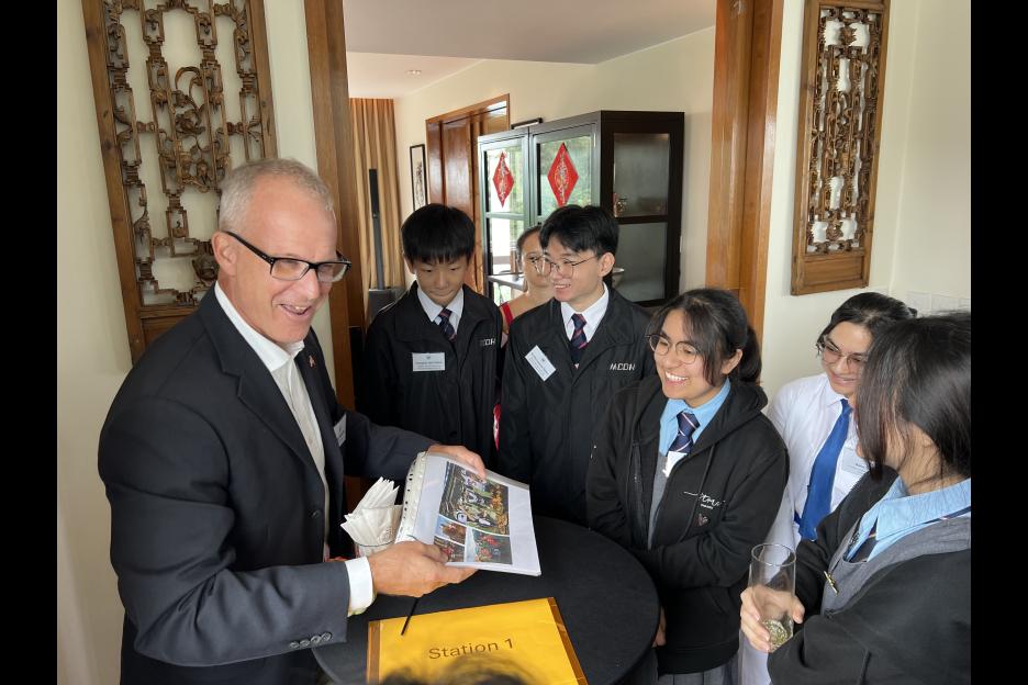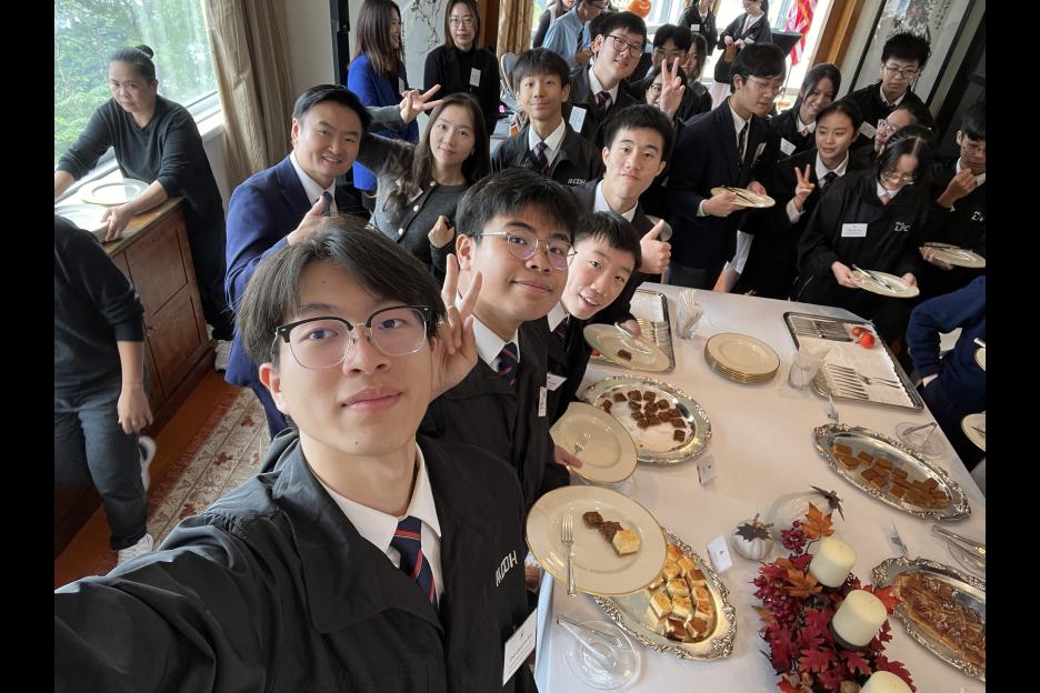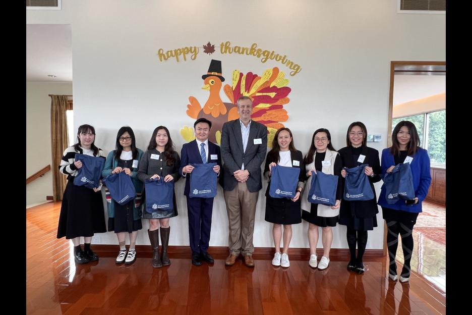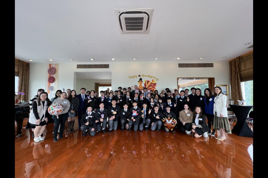 本校早前受美國駐港澳總領事梅儒瑞先生(Consul General Gregory May)邀請,於十一月二十一日參與感恩節慶祝活動。當天,崔永浩校長帶領一眾學生前往總領事官邸出席活動,同學進行了各種英語文化學習活動,感受西方節日的文化特色,藉此鍛煉學生的英語能力,擴闊國際視野。