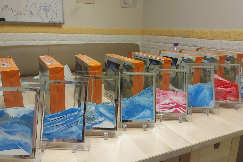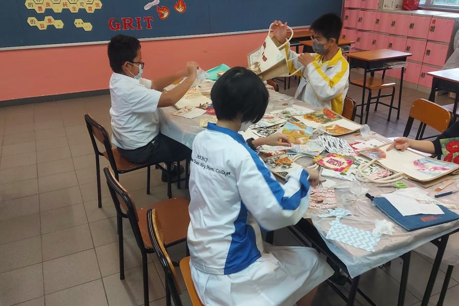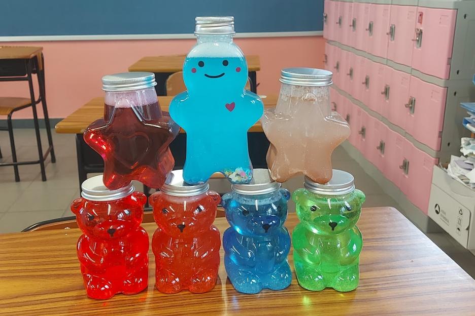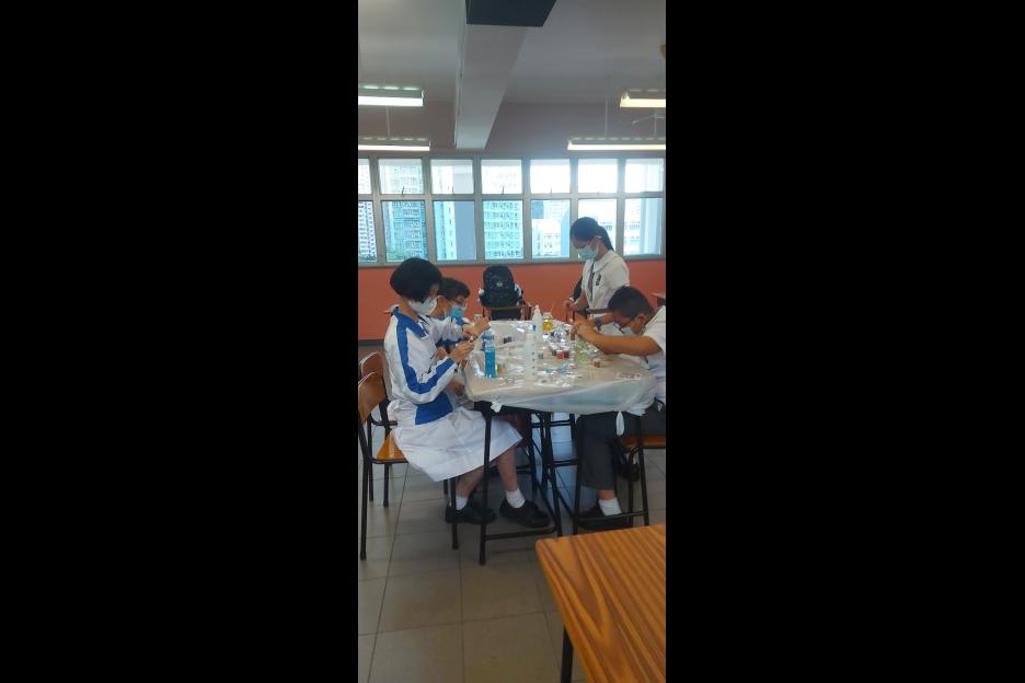 同學在表達藝術小組當中,創作流體熊、流沙畫、戳戳繡和冷靜瓶,同學們認識個人身心需要,透過藝術創作有助同學抒發感受和探索自我,促進身心健康。