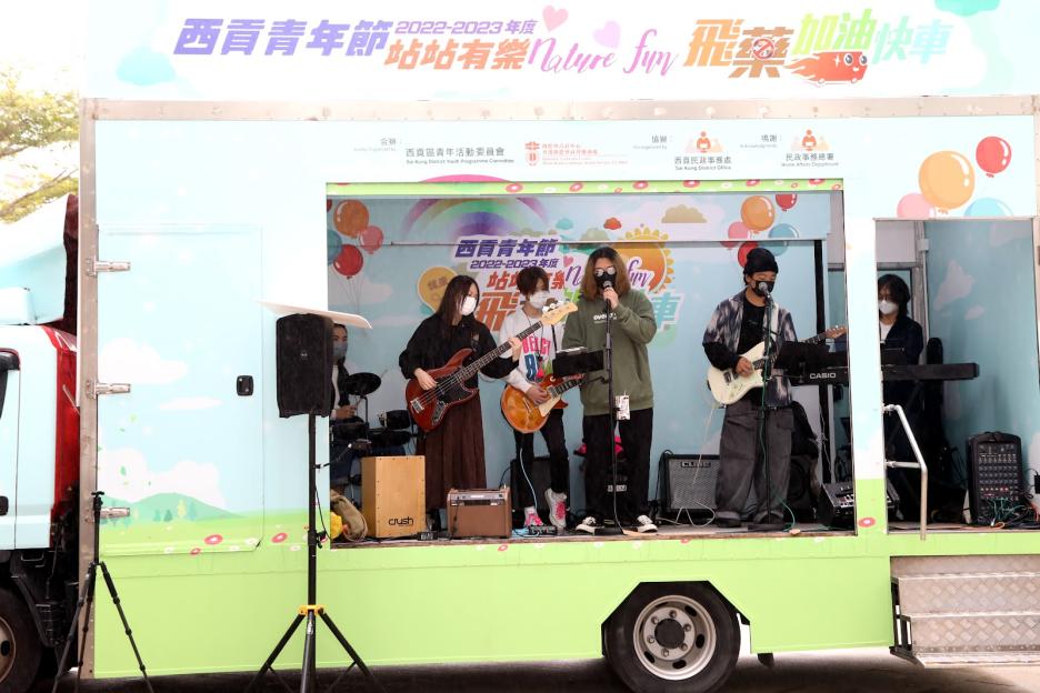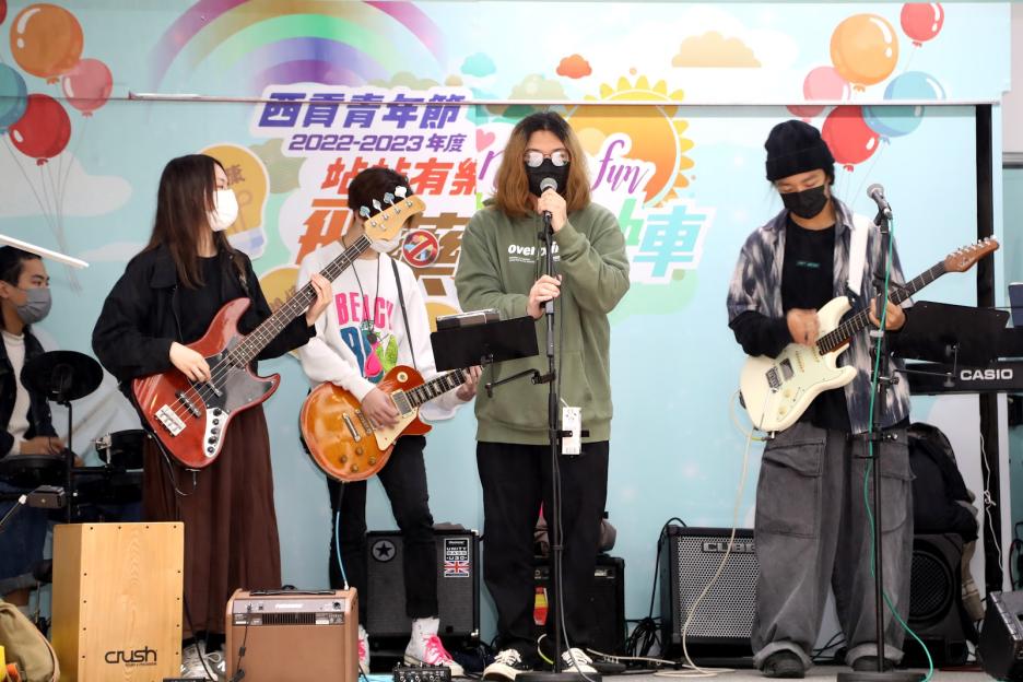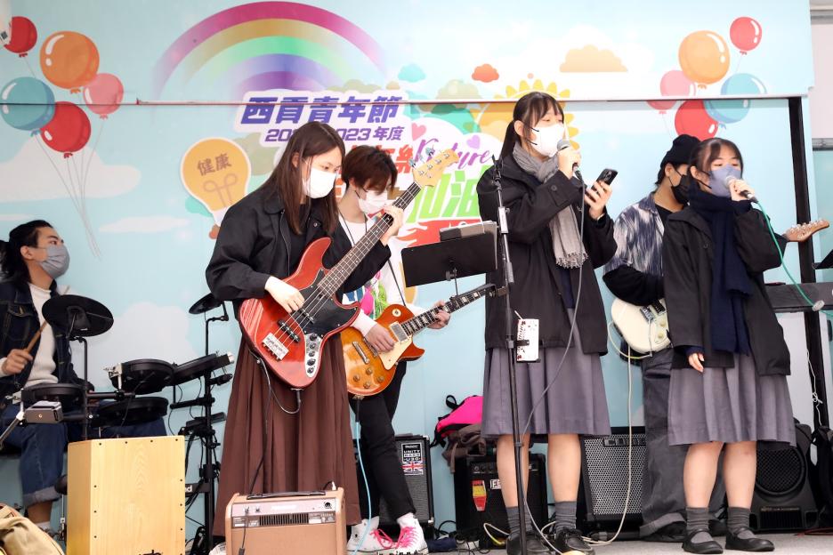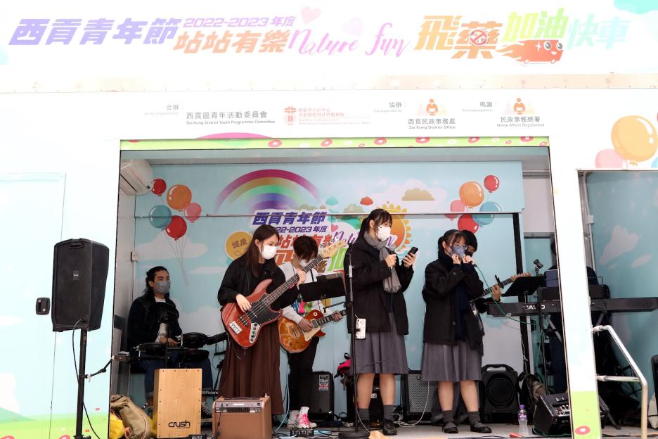 輔導組響應【西貢青年節2022-2023】,邀請《飛藥加油快車》到校向同學宣傳禁毒訊息,當天有樂隊演唱,攤位遊戲及展覽,各同學踴躍參與,更有同學同台獻唱,氣氛熱烈。