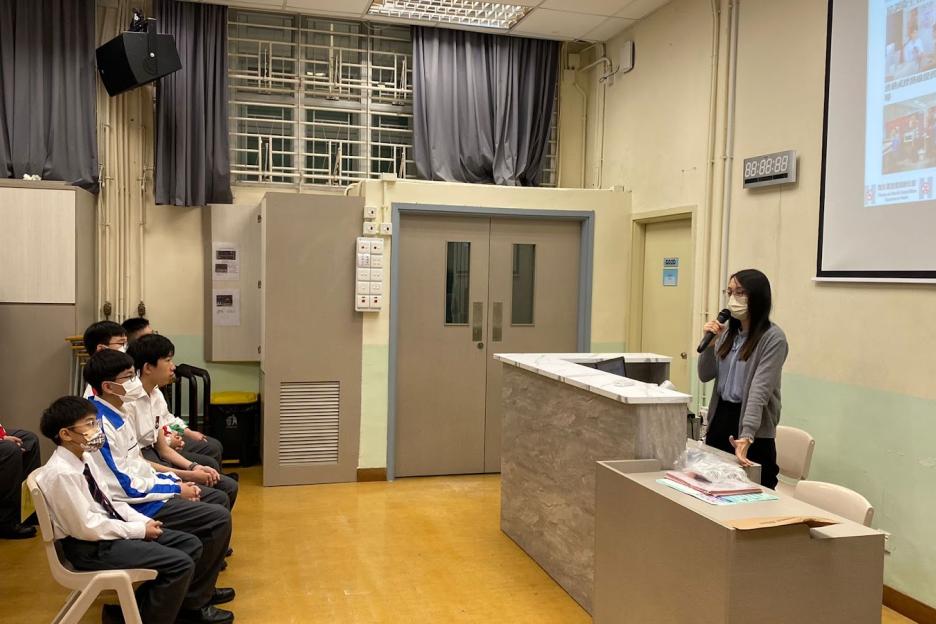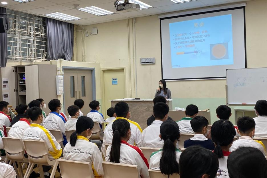 輔轉組 - 中一禁煙工作坊,衛生署到校為中一學生進行禁煙講座,教導健康資訊。