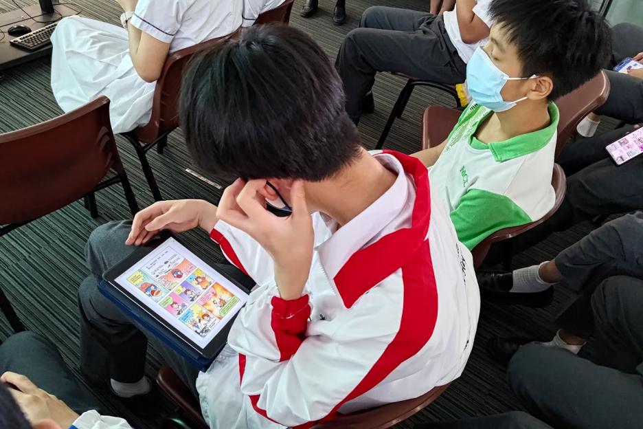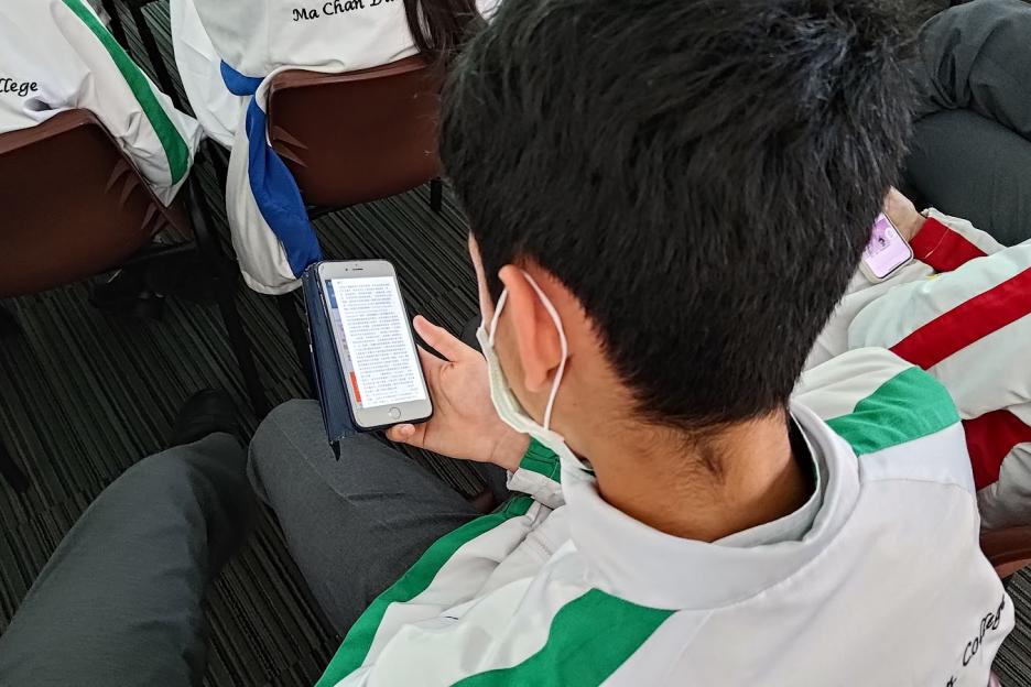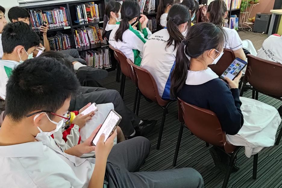 為了能讓同學將資訊科技發展與閱讀結合,我校於午間為中三級同學舉辦「電子閱讀啟動禮」的活動,向同學介紹了HyRead HK和金閱閣校園版兩大電子書平台,同學即時利用手機和iPad借閱圖書,既有經典名著、亦有生活科普,無論男女全都閱讀得津津有味、全神貫注。
