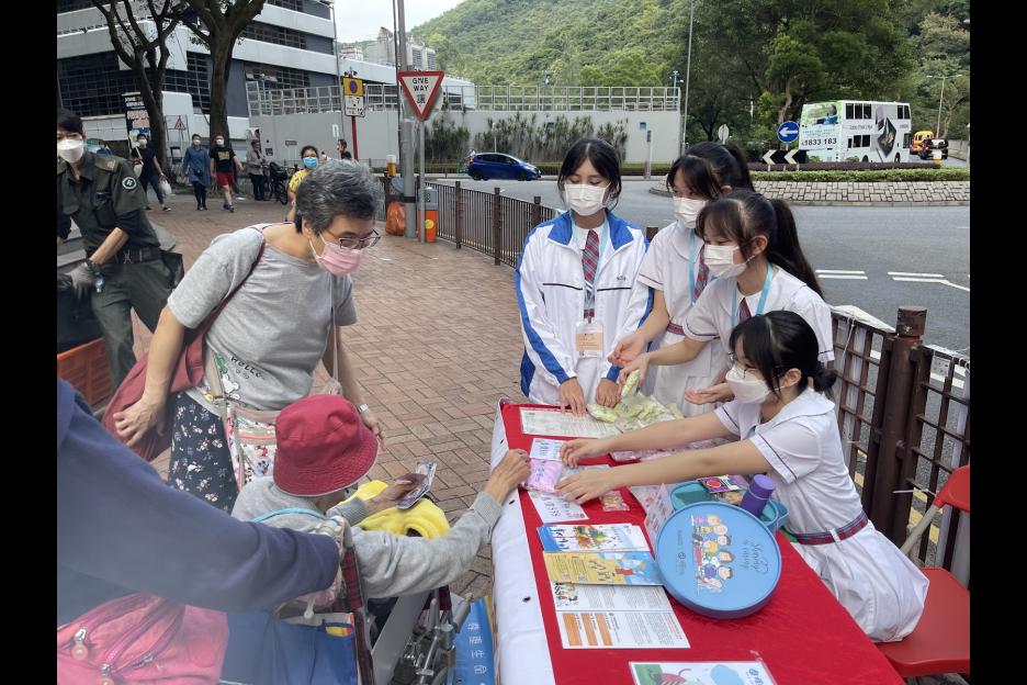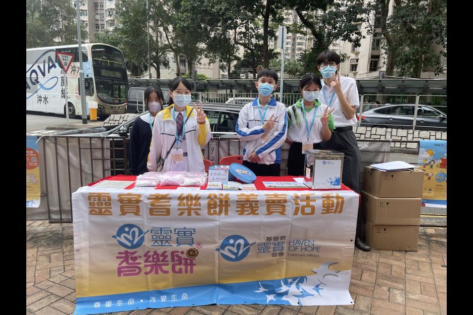 本校紅十字會獲基督教靈實協會邀請協助耆樂餅義賣活動,隊員在服務期間獲益不少,學懂助人自助,為長者非政府資助醫療服務經費出一分力
