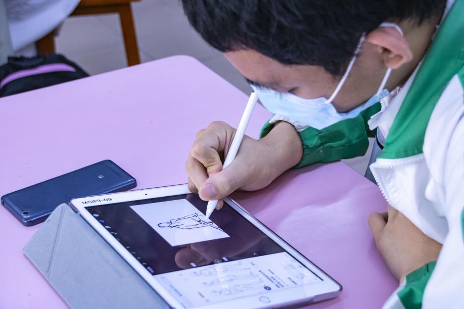 視覺藝術科聘請專業導師教導同學在iPad運用Procreate繪畫,把iPad 變成畫布,讓同學由認識軟件功能的基本開始,從線稿到圖層上色、運用深淺濃淡、光影到混色等技巧,創作不同主題的畫作,享受電繪創作的樂趣。