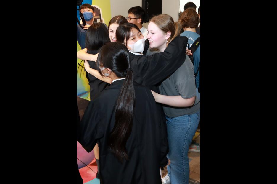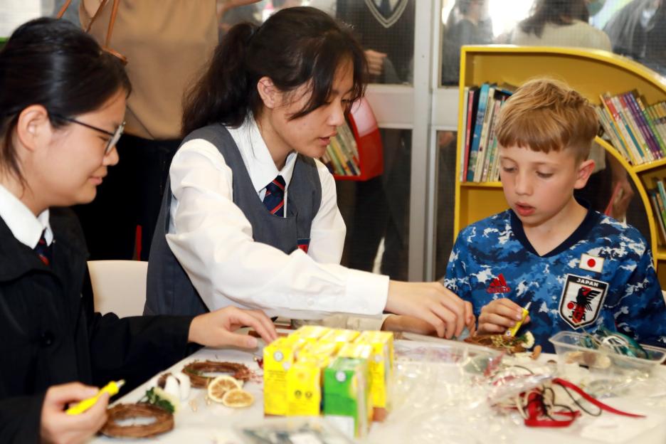 同學不但活用課堂上學到的英文和國際學校的同學交流,