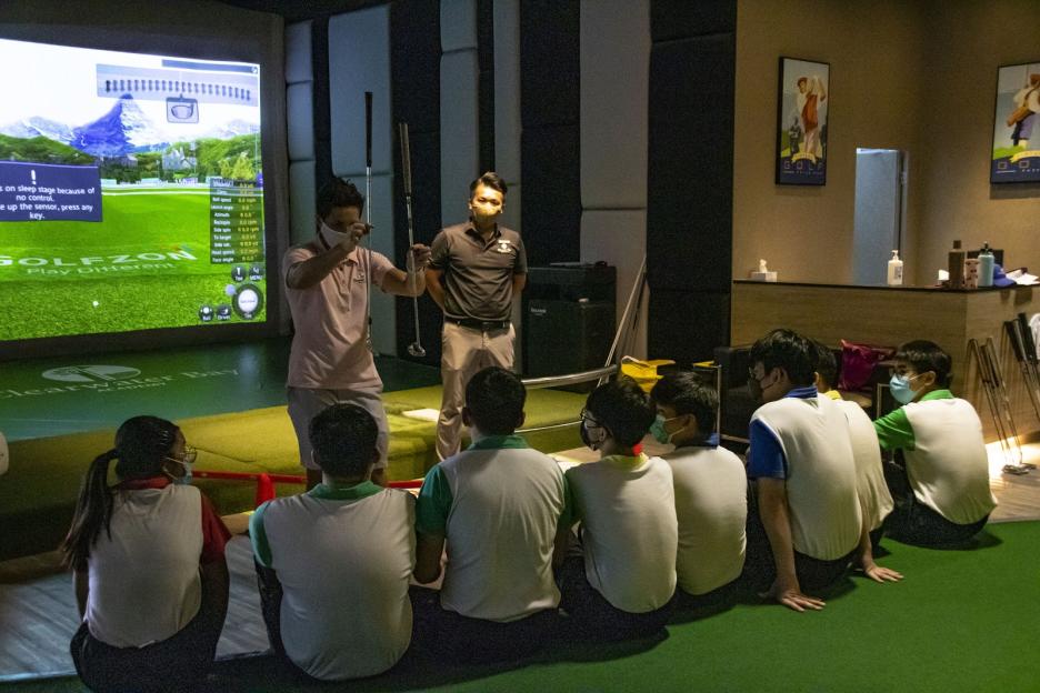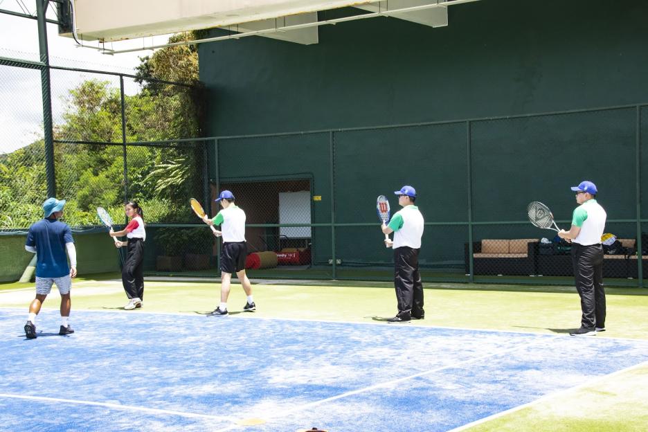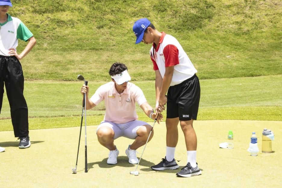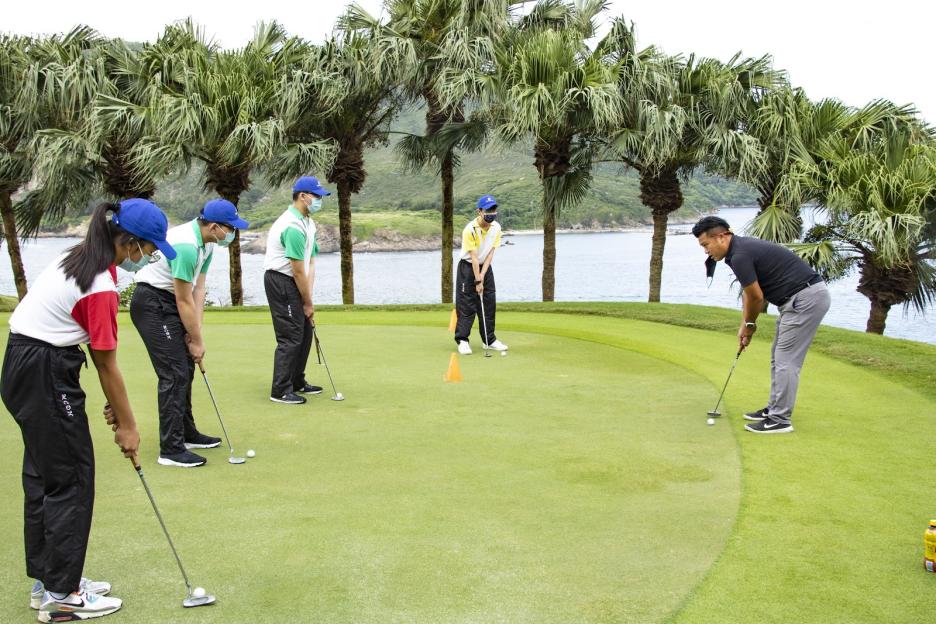 7月15日本校舉辦「高爾夫球及網球同樂日」,陳校長和體育科老師帶領16位同學到清水灣高爾夫球鄉村俱樂部,一同體驗打高爾夫球和網球的樂趣,初嘗「一桿進洞」和「發 Ace球」的滋味。是次活動旨為發掘有潛質同學下學年作培訓,全天活動及午膳費用均由俱樂部贊助。