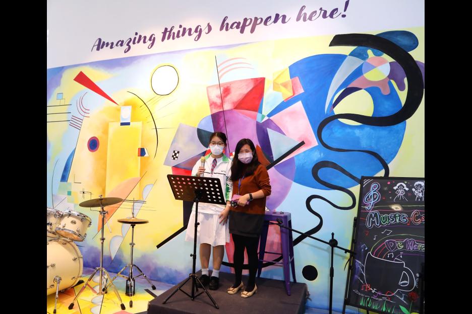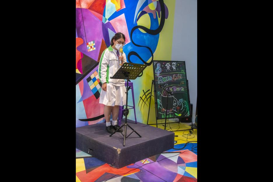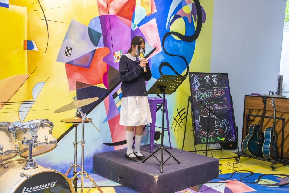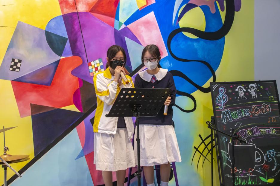 本年度第二次Music Cafe, 有同學再度登台, 亦有新同學初次登台, 大展音樂才藝。5B 李海欣 【擁抱愛】4A 陳俊亨 【孤獨病】2B 陳思琦 【慢冷】5C 林卓凝 【玉蝴蝶 】4A 邵宏彥 【記得】