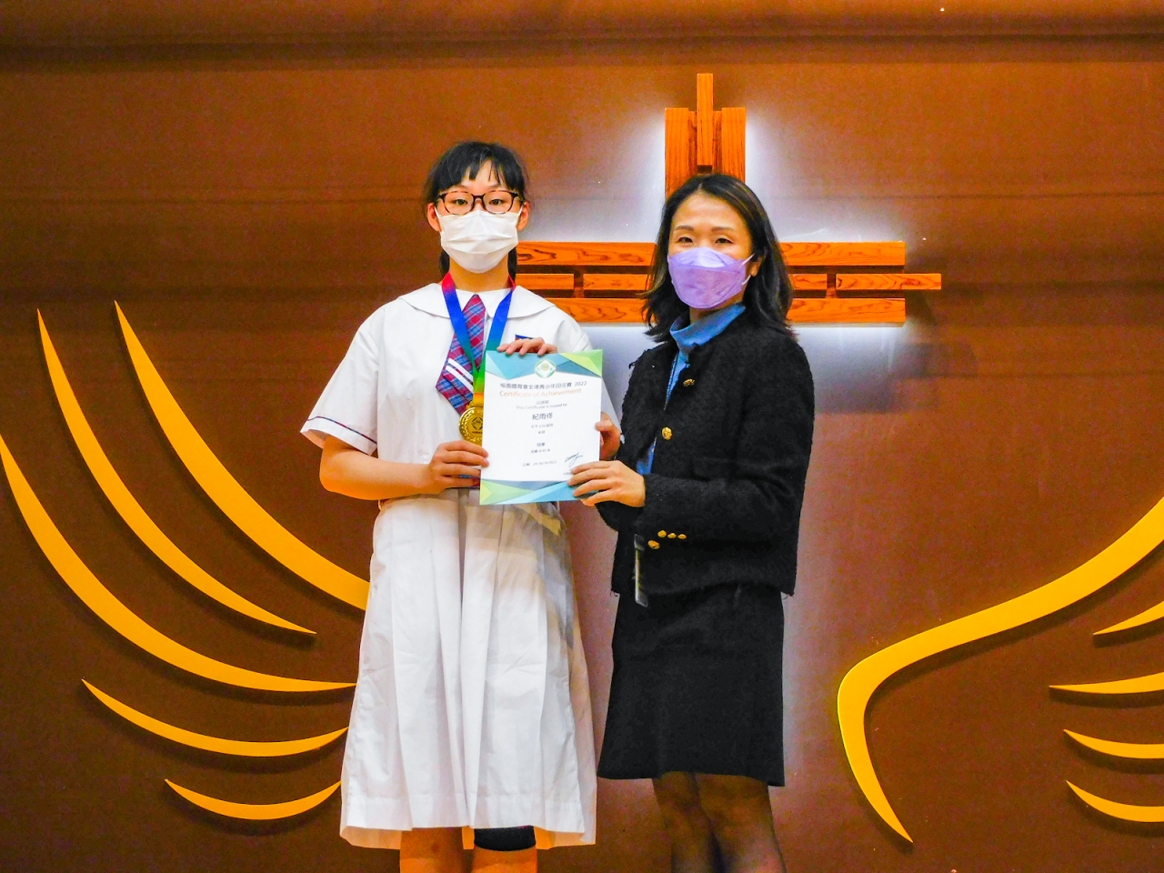 本校學生紀雨佟同學出戰由愉園體育會主辦的全港青少年田徑賽2022,與一眾田徑好手一較高下。最終脫穎而出,以8.45米成績勇奪女子U16組別鉛球冠軍。