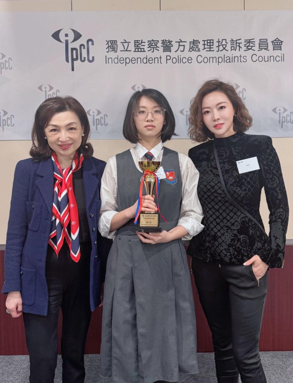 劉芷萱同學在監警會舉辦的「年報封面設計比賽」中勇奪亞軍,大會為表揚劉同學的卓越表現,於13/3/2026邀請劉同學及其家長出席「年報封面設計比賽頒獎典禮」。監警會主席王沛詩女士,SBS, JP親手頒發獎盃及1000元書券以作鼓勵。
