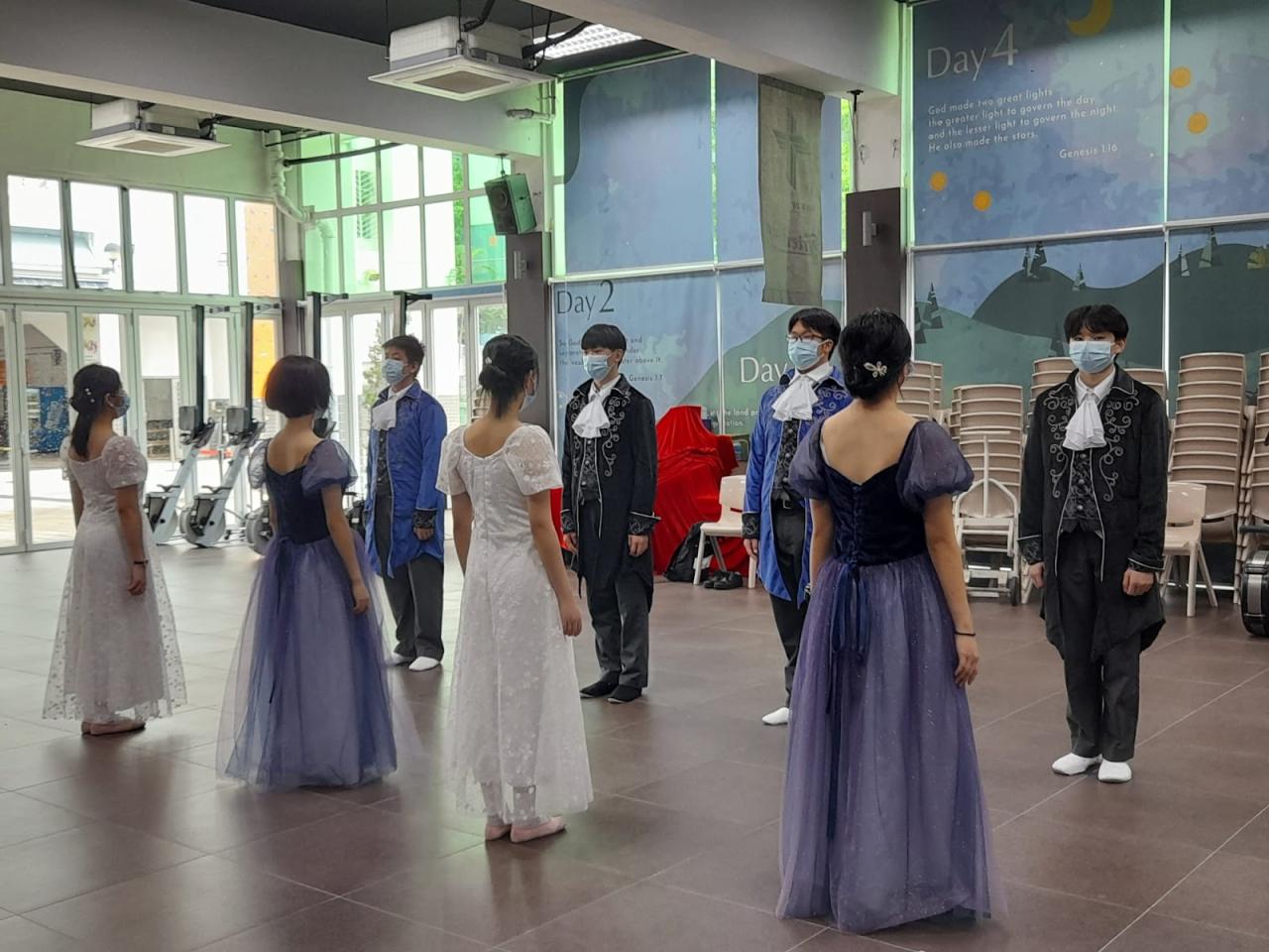 恭喜本校西方舞組同學於「第二屆舞吧!香港青年兒童舞蹈家大賽群舞組」取得優異獎佳績!同學透過學習西方舞感受多元文化,導師除教授舞蹈之餘,亦同時教導同學認識古典舞曲、與舞蹈有關的英語辭彙,以及西方禮儀。圖為學生穿著華麗舞衣綵排的片段。