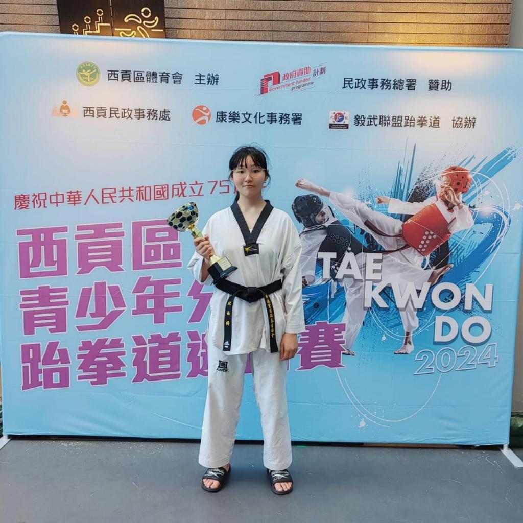 恭喜6B班紀雨佟同學於11月17日在西貢區青少年分齡跆拳道邀請賽的女子專業組-輕中量級比賽中展現了出色的實力和堅毅的精神,最終奪得冠軍。比賽當天,紀同學面對來自不同學校的優秀對手,充分發揮了她的技術和策略,靈活運用各種踢擊和防守技巧。此外,紀同學的成功不僅是她個人努力的結果,也離不開教練的悉心指導和家人的支持,期望這次比賽讓她更加堅定了對跆拳道的熱愛,並激勵她在未來的訓練中繼續努力,以追求更高的目標。