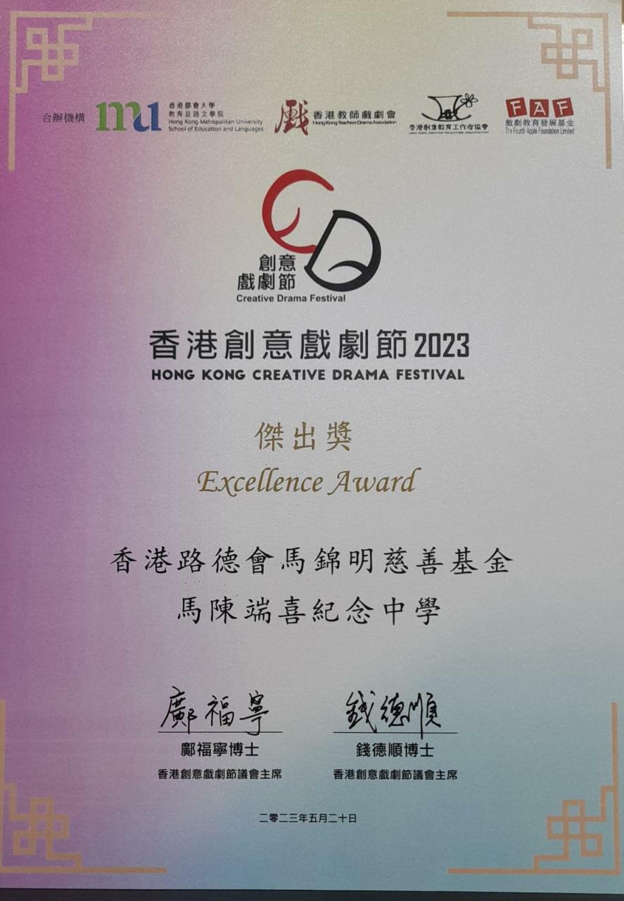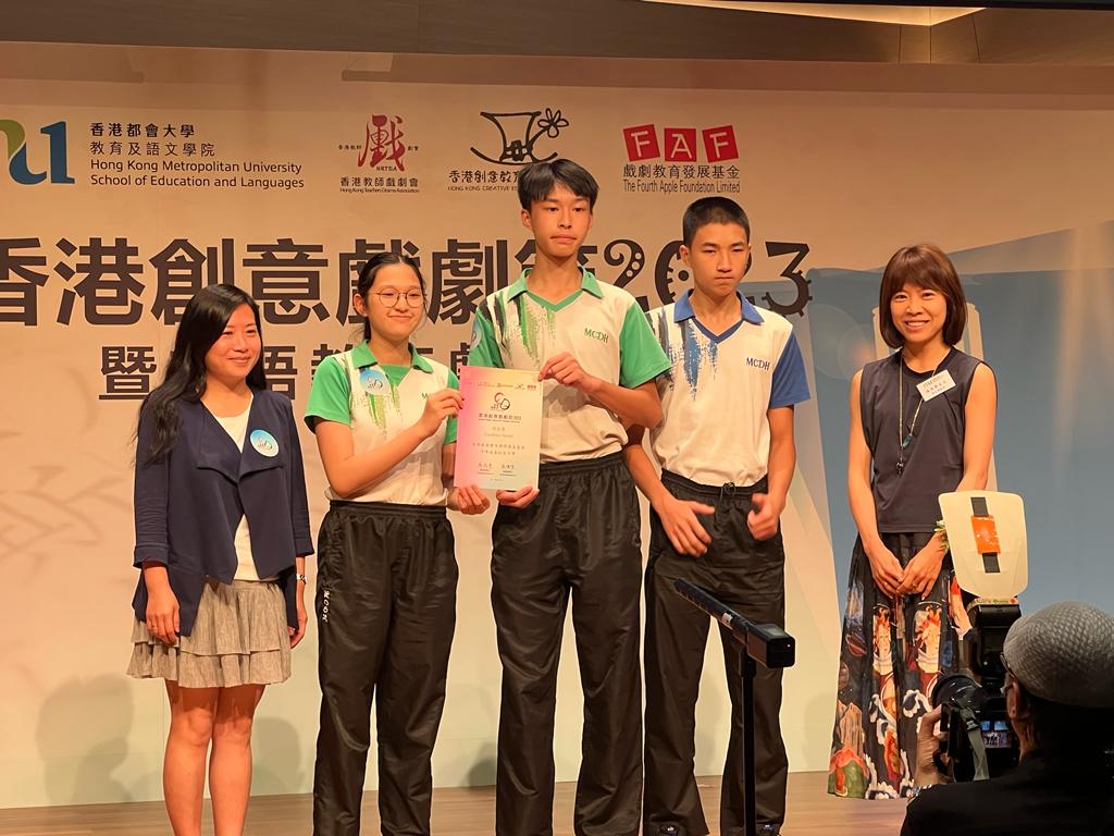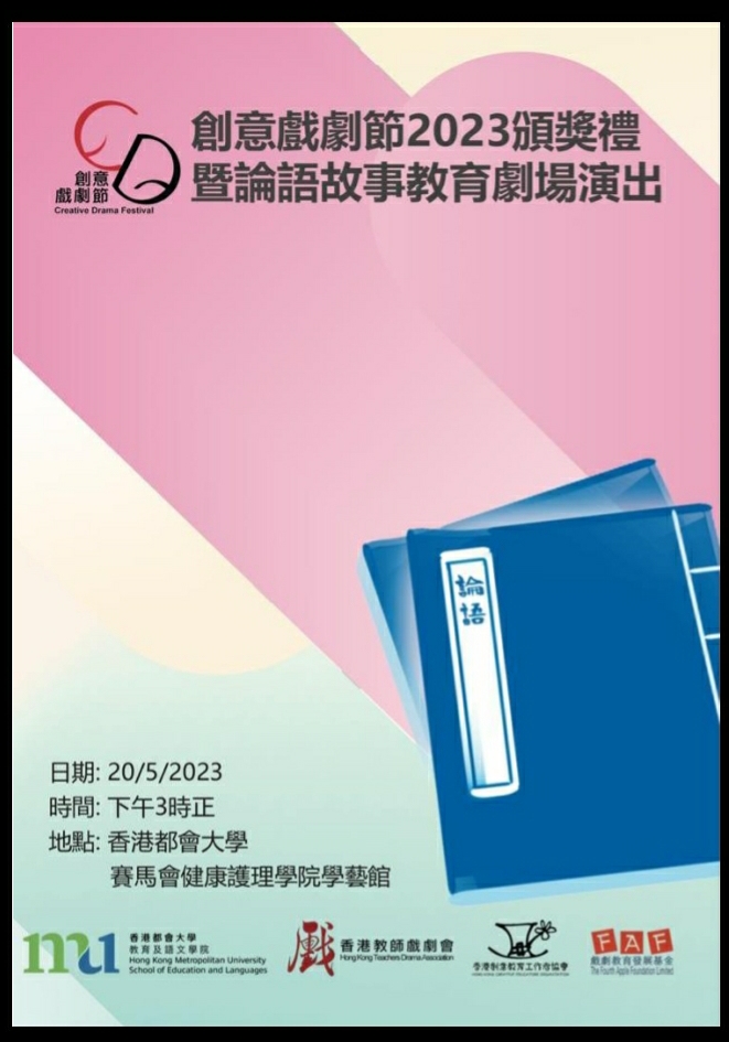 本校藝術發展科自引入「戲劇教育」而來,積極透過戲劇技巧培育學生的語文能力、表達能力、創作能力,以及協作能力,並鼓勵學生參與公開表演或比賽。早陣子,中四三位熱愛戲劇的學生參加了「香港創意戲劇節2023」- 《論語》即興劇場,並取得中學組「傑出獎」,實在可喜可賀!恭喜獲獎同學!