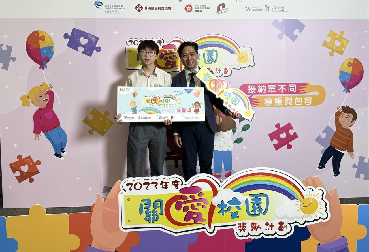 關愛校園獎勵計劃,是由香港基督教服務處與香港輔導教師協會合辦,並聯同中華人民共和國香港特別行政區政府─教育局攜手推行。藉以公開表揚於2022至2023學年內積極推廣及實踐關愛文化的學校。經過兩輪評審後,本校在信念、領導、環境、支援、分享及成效六方面均可達標,因而獲得嘉許「關愛校園」榮譽。